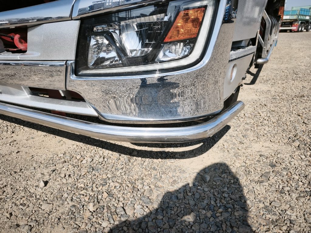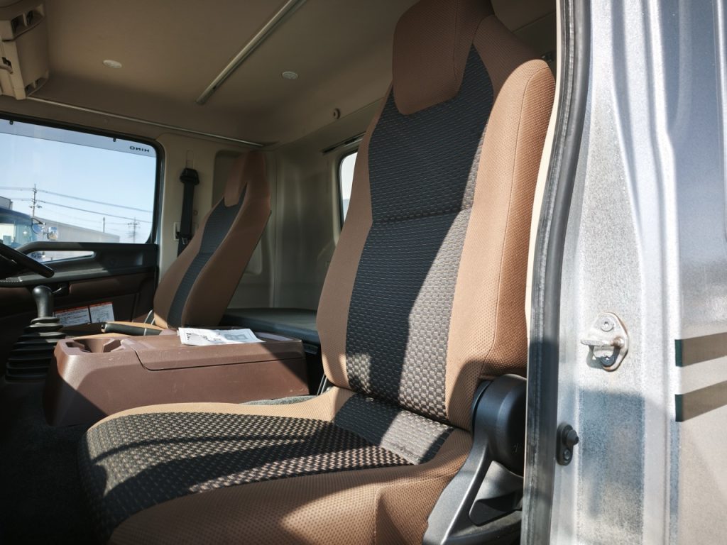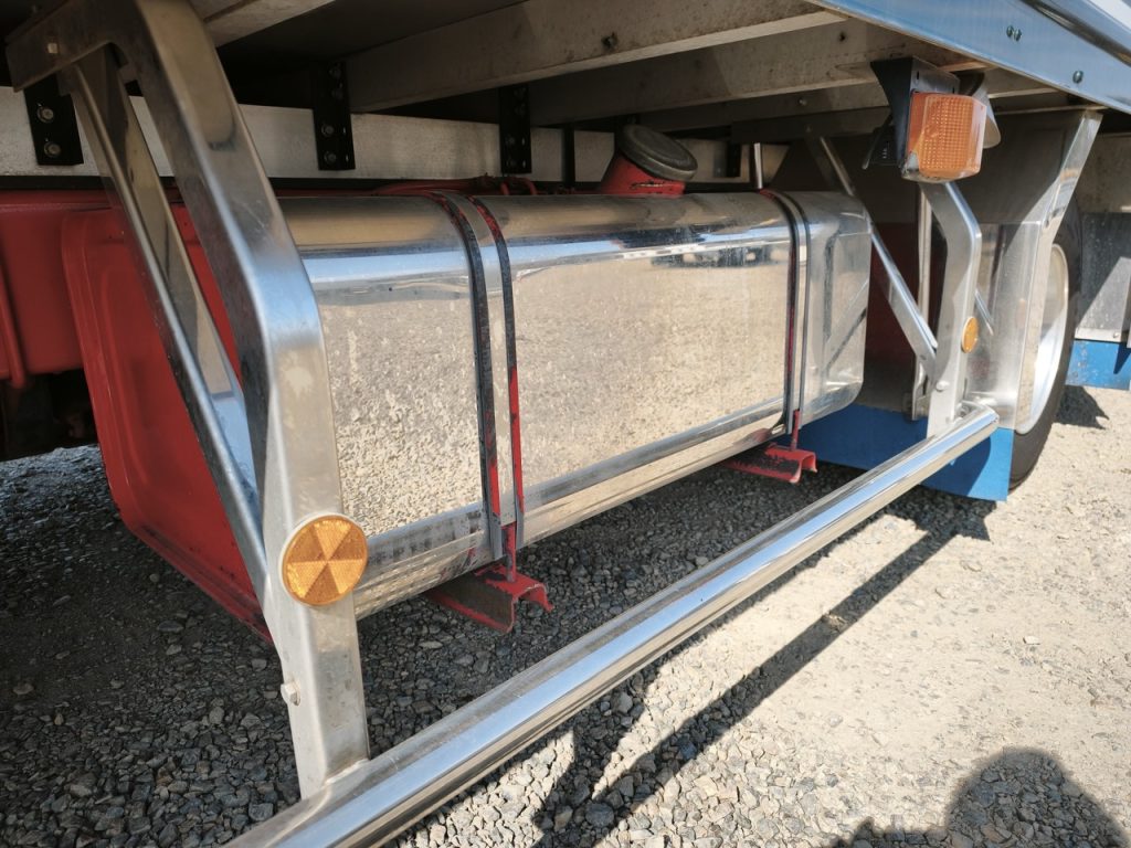 箱はトランテックスでしっかりアルミで飾ってて造りボディっぽい。さらに中型なのにジョロダーレールついてるし、庫内リモコン、二枚折のゲートもついてる。毎日運んでくれる貴方へ感謝感激仕様だわな。ちょっとシフトゲート入れるのにシブるきらいがあるので、そこだけ調整して欲しい。このご時世、いちからカスタムトラックを組むのは大変だけど中古トラックなら「あると良いながある」(笑)。はい。業界みんなで頑張っていきましょう!