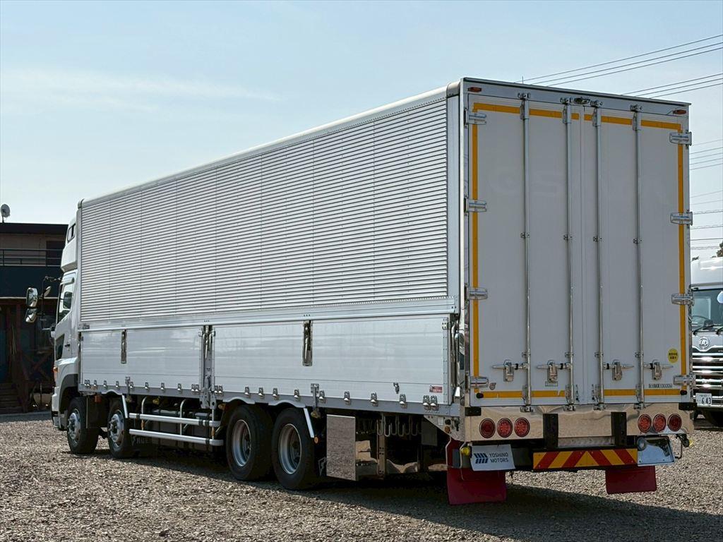 ホーム > 中古トラック > 日野 > 低床 > リアエアサス > 4軸 > プロフィア > トラック詳細 : ウイング車(【入庫点検中】10mボディ!スーパーハイルーフ★リアエアサス・リターダ・4軸低床)QPG-FW1EZEG