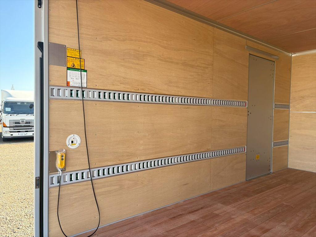 | 仕様 | 登録済未使用車★ワイドロング・全低床・ラッシング2段・ゲート蓋(フルハーフL:1590、W:2100)・ラジコン・庫内リモコン・スライドサイドドア | ||||